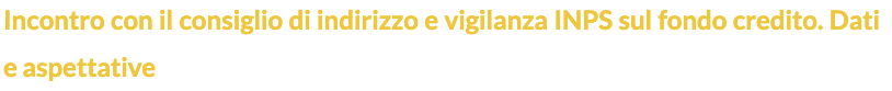 Nella mattina di ieri, il Presidente del CIV (Consiglio di Indirizzo e Vigilanza) dell’INPS Roberto Ghiselli ha incontrato le OO.SS. per un confronto che ha avuto per oggetto la verifica dell’attività del “Fondo Credito”, e cioè di quel fondo a carattere mutualistico e solidaristico tra dipendenti e pensionati pubblici.
